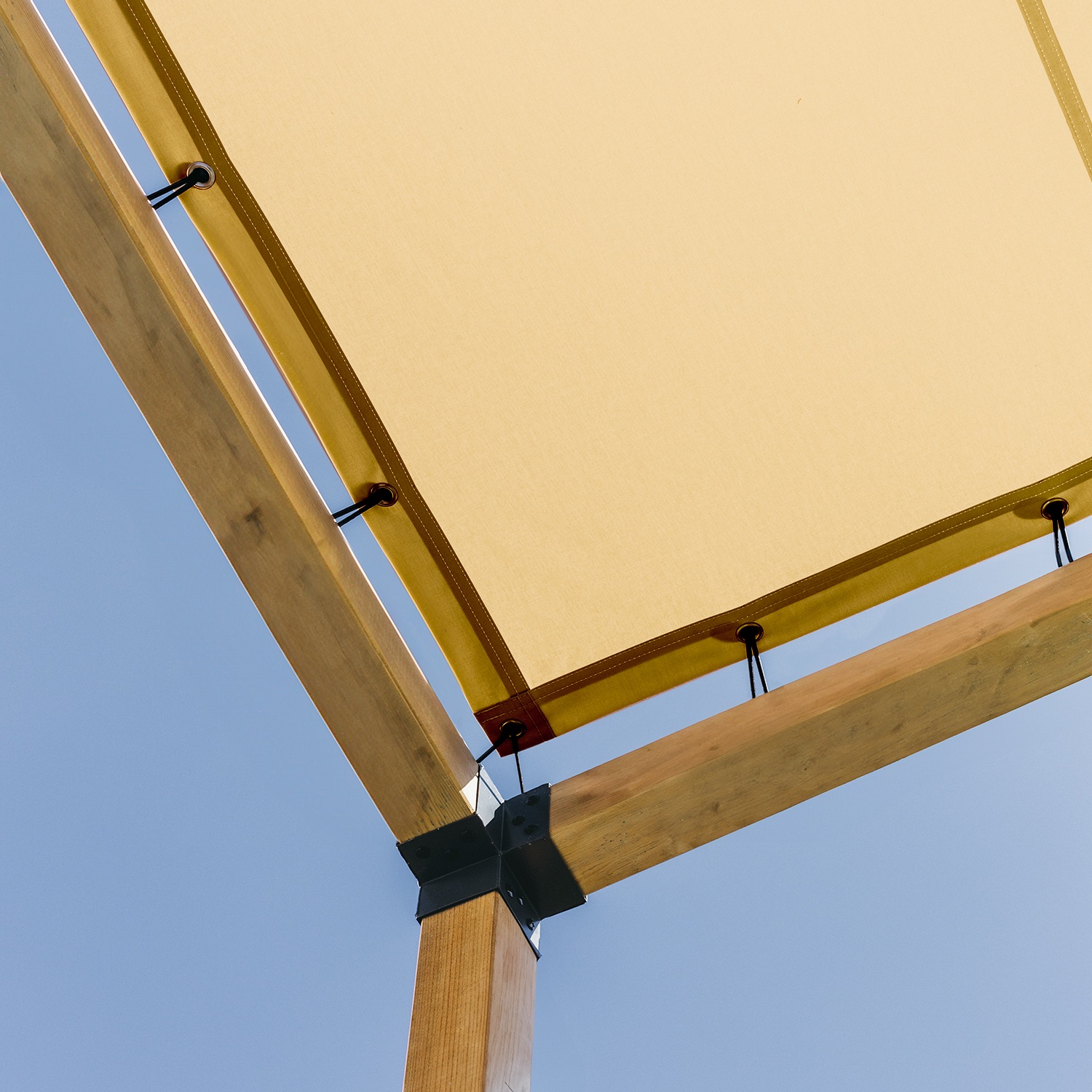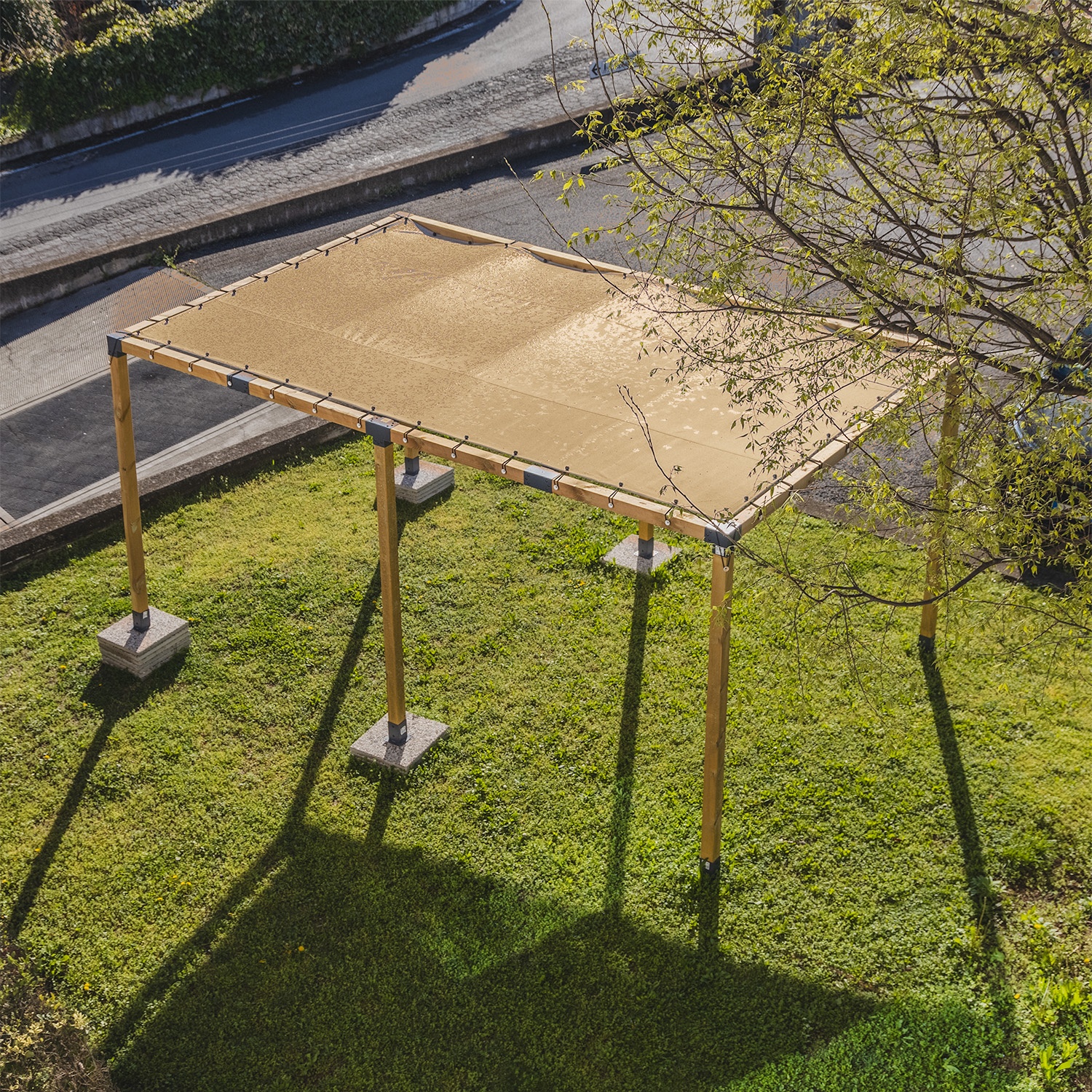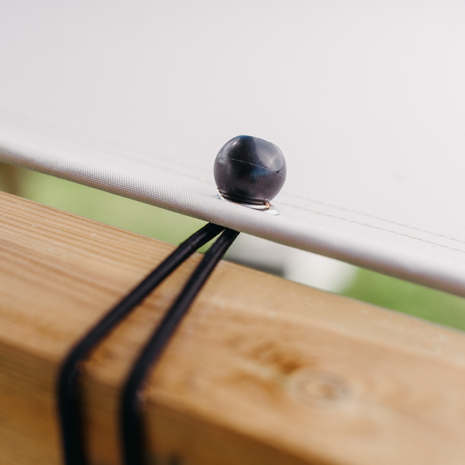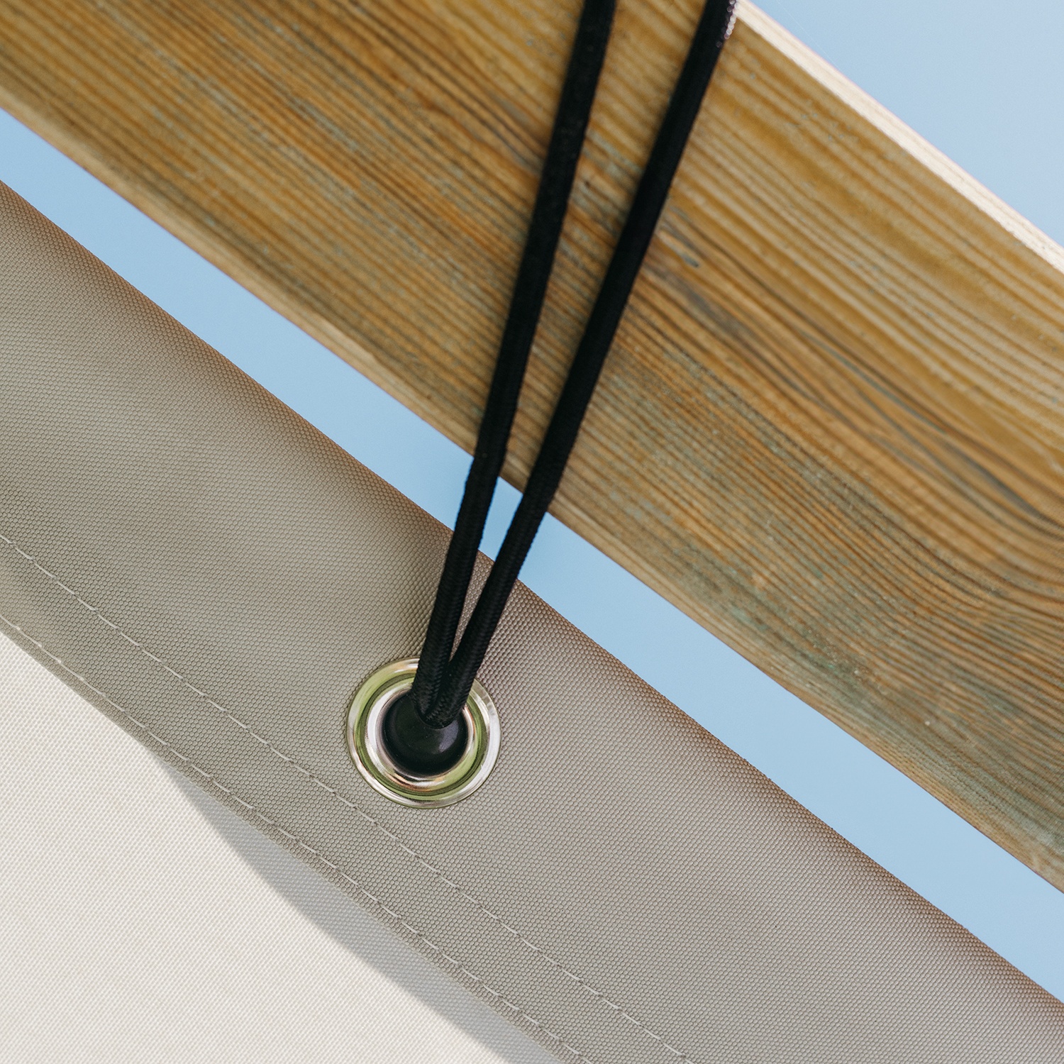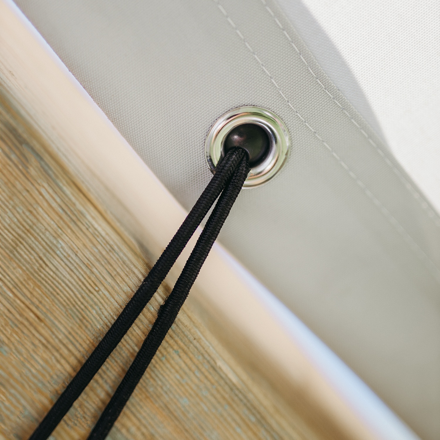Bugna is premium quality shade sail with grommets with a double perimeter hem made of Sunstop® thread and nautical grade steel eyelets that protects against rain, wind and UV rays.