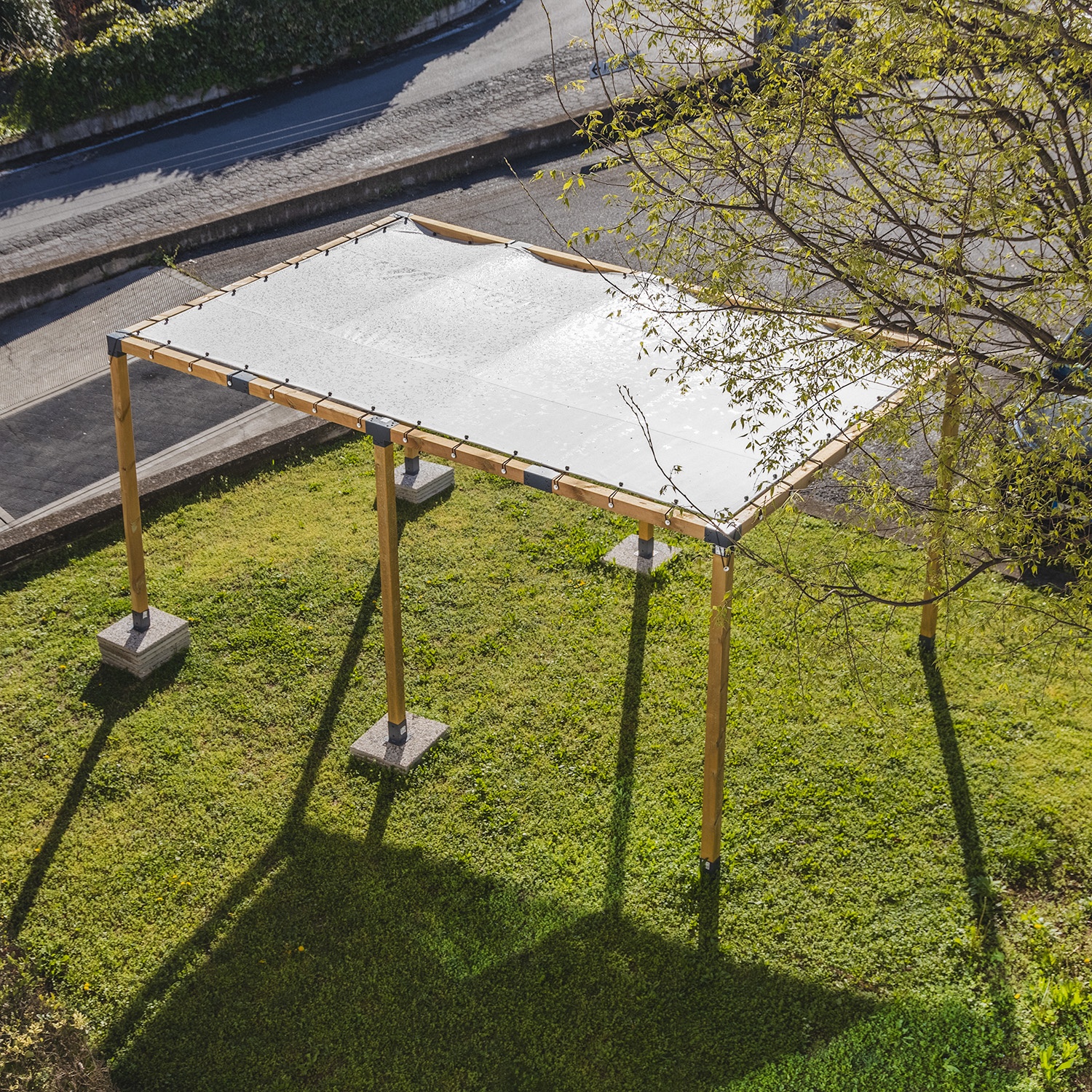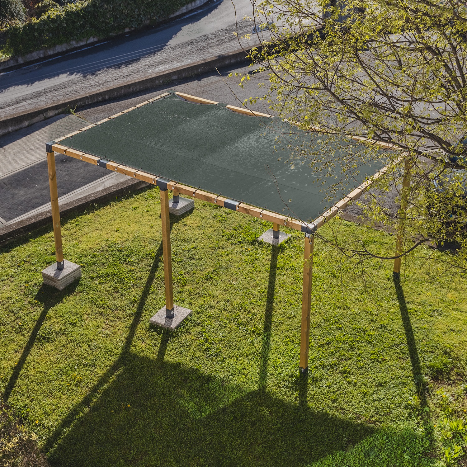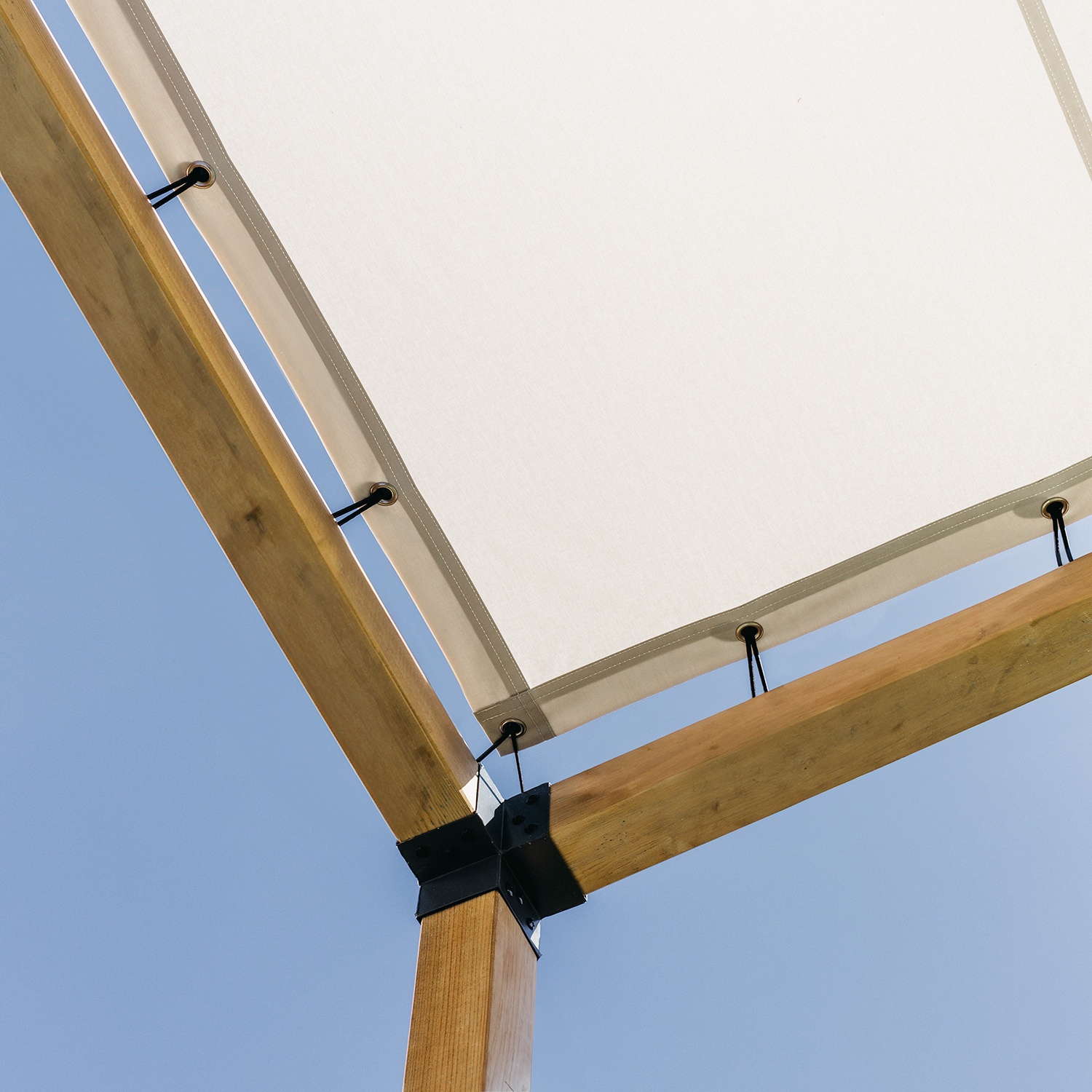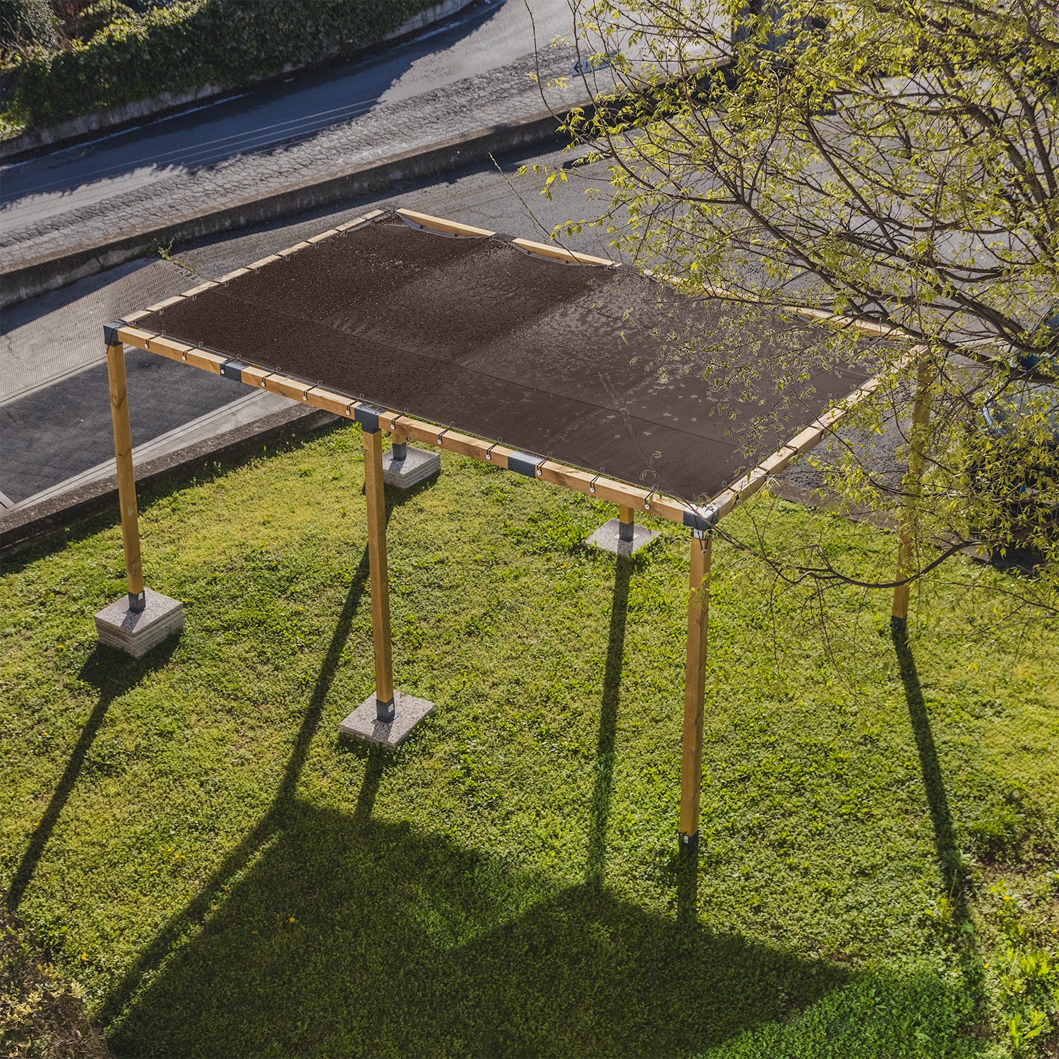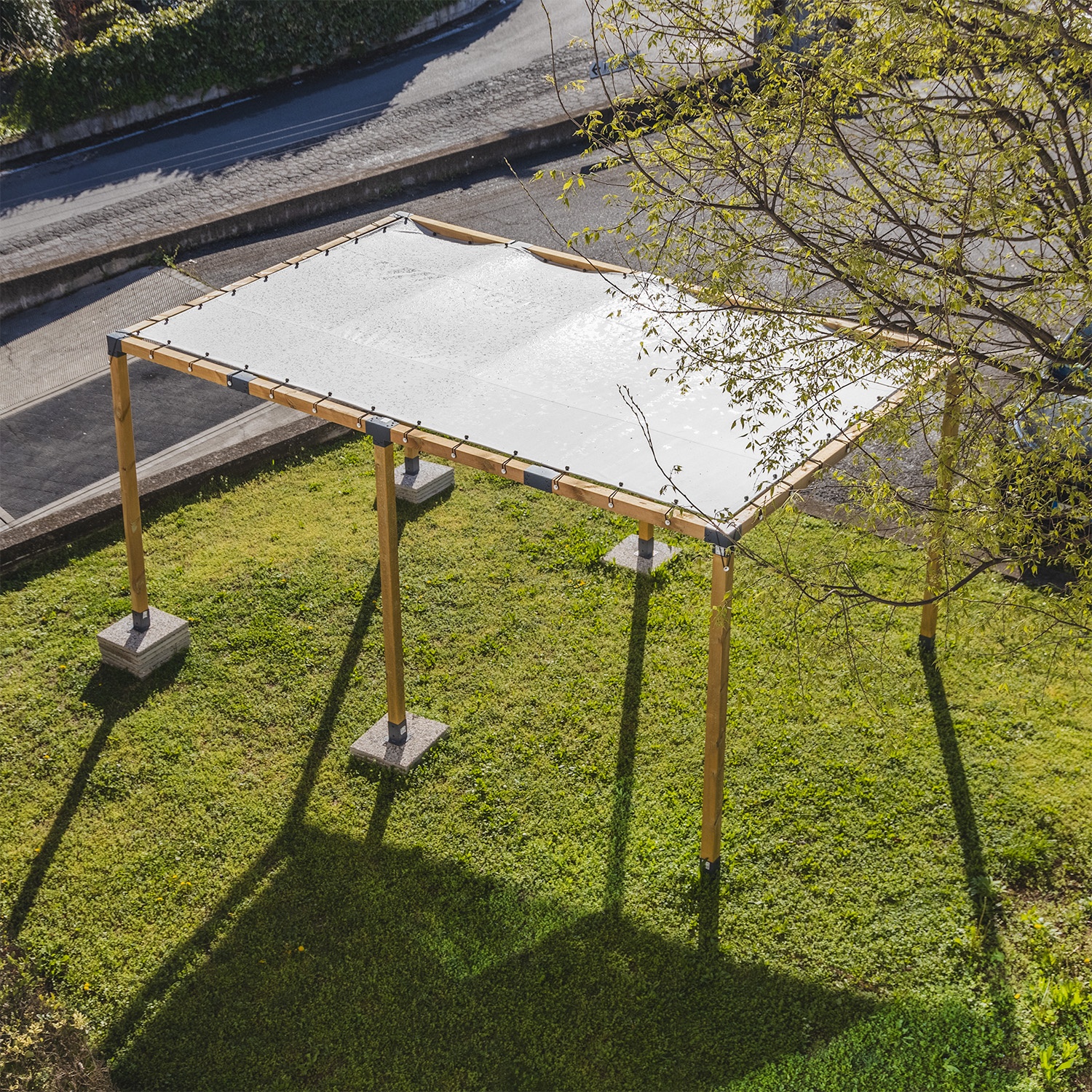 Bugna is premium quality shade sail with grommets with a double perimeter hem made of Sunstop® thread and nautical grade steel eyelets that protects against rain, wind and UV rays.