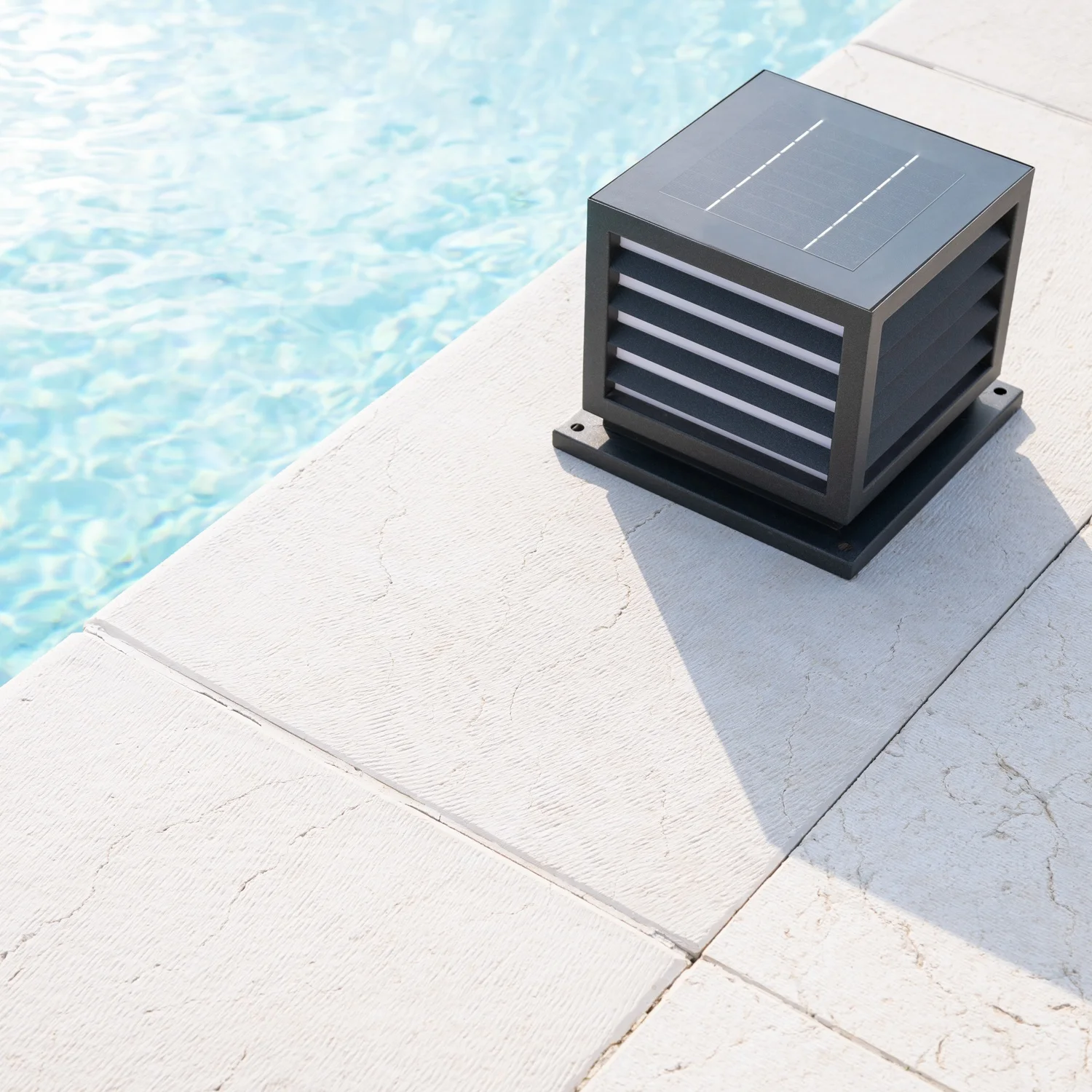Solar QUB is the automatic light switching outdoor lamp with integrated solar panel and lithium battery.
