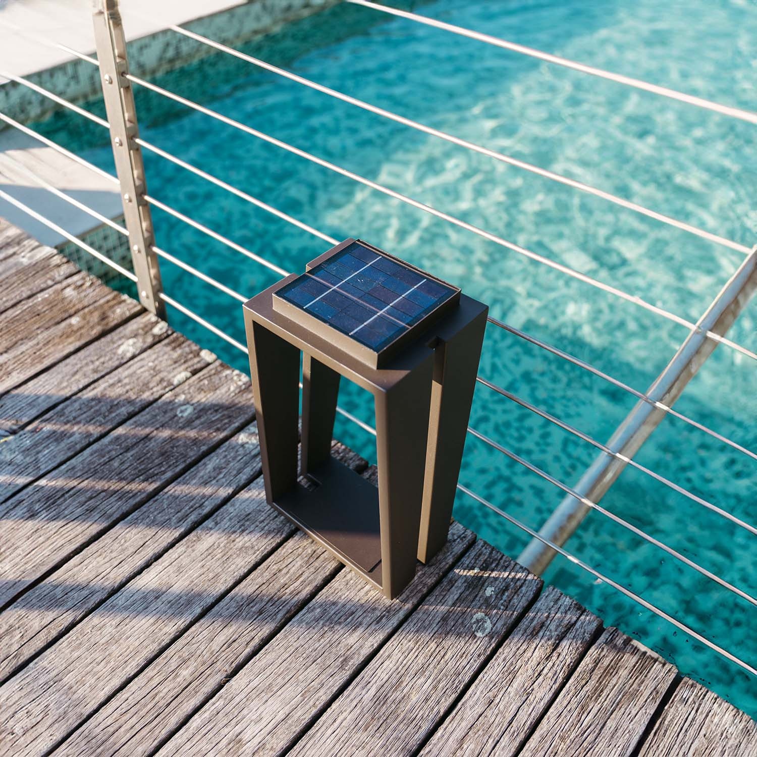 Thanks to its solar recharging system, it requires no connection to the electric power system, and the light sensor allows it to turn on