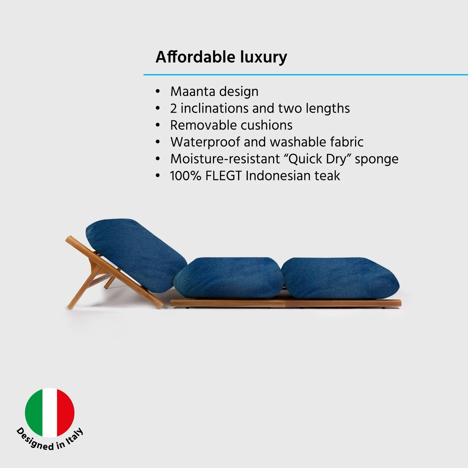 Tuga's modular structure allows you to choose between two different 56° or 36° backrest inclinations, to find the ideal position for reading, relaxing or sunbathing.