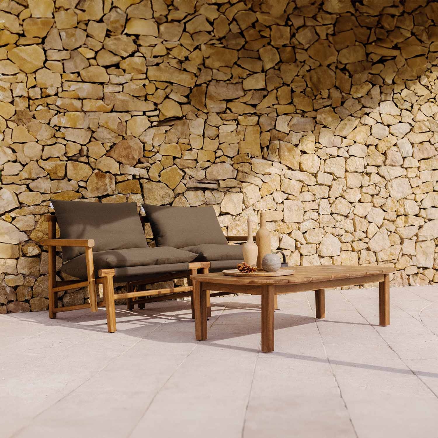 Its unique design and modularity make it perfect for completing your space under the shade sail. Made with eco-sustainable materials, FLEGT certified Indonesian teak and waterproof fabric, Bolina is resistant and, thanks to the removable pillows, easy to clean.