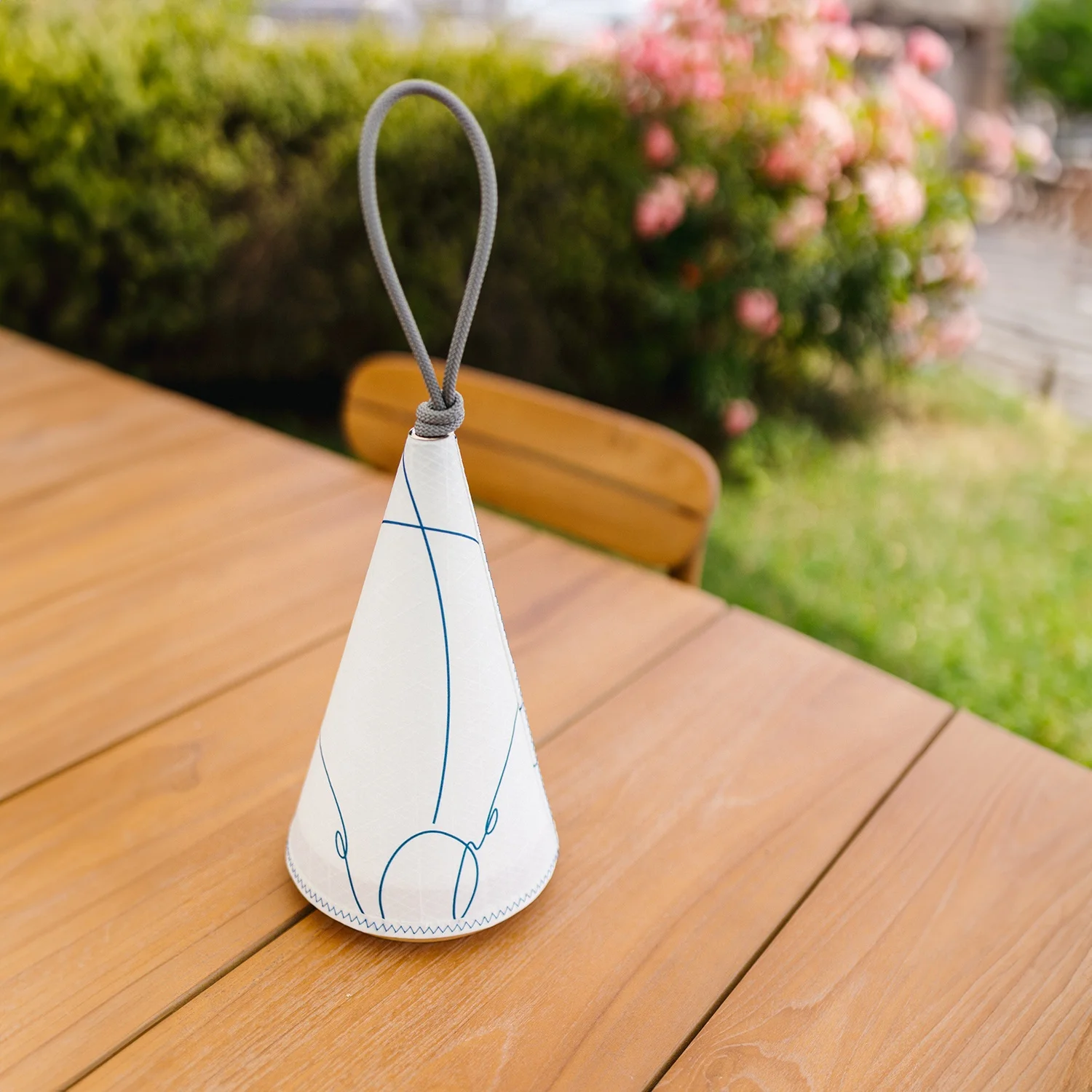 Cala is much more than a simple lamp: it is a sensorial 'experience that provides atmosphere' to your outdoor spaces. Its unique design, inspired by boat sails, combines the elegance of wood with the resistance of nautical materials.