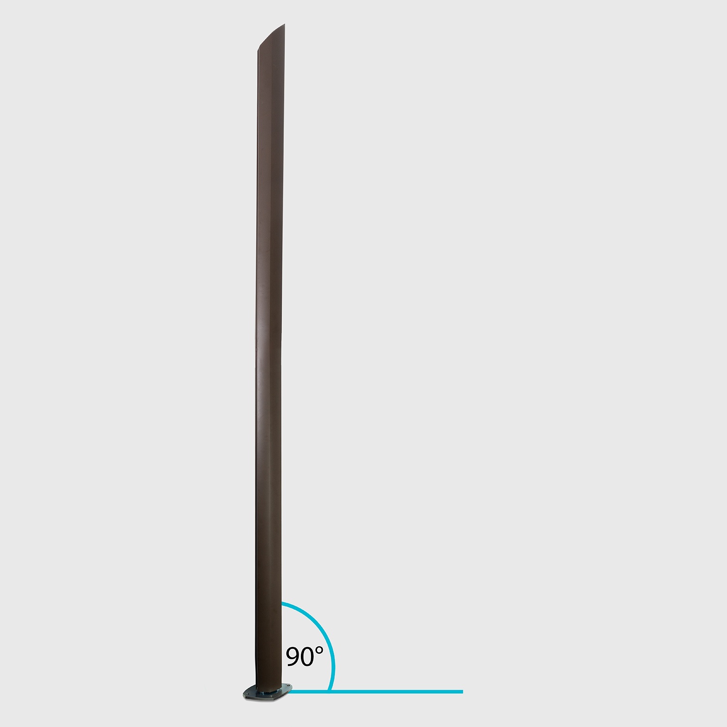 The difference between the 75° and 90° poles is purely aesthetic.Note, however, that a 75° tilted pole allows you to recover the space that the anchorage needs to be tensioned properly. So with a 75° slant pole, the sail can cover more space than with a 90° one because it can be placed at the base of the pole.