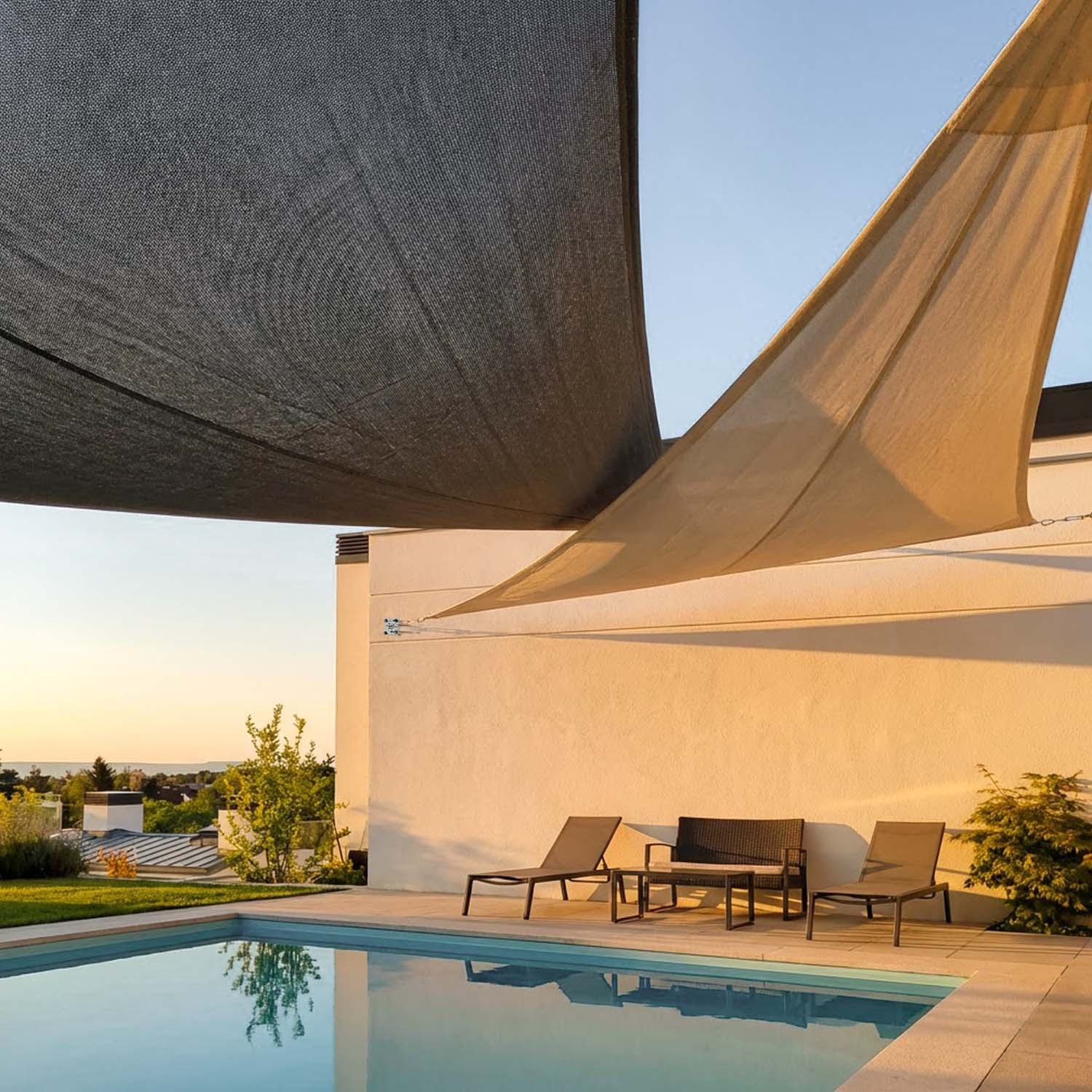 The breathable sail creates an airy shade area that is sheltered from UV rays. At the same time, it protects against hail and wind gusts.