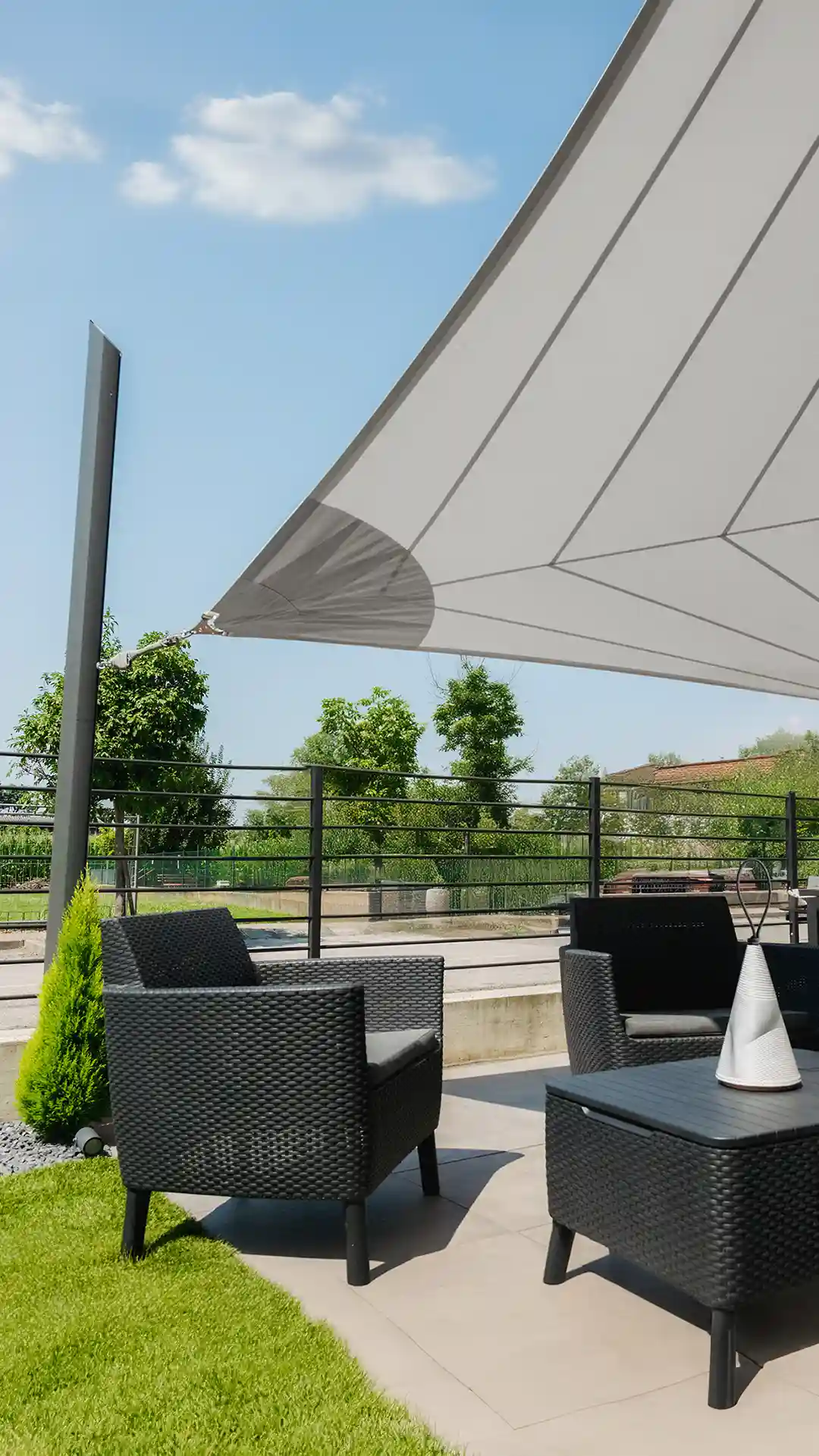 A technology that originated in the early 1980s in the ever-evolving field of nautical competition sails. The orientation of the cuts, the amount of cuts and the type of stitching ensure the propagation of force over the entire surface making the radial cut sail resistant to strong wind loads. Solaria +Plus has taken the radial-cut concept to its fullest expression by doubling the number of sail clothes compared to Solaria, following nautical trends and aiming for ever-increasing sail resistance to the most adverse weather conditions.